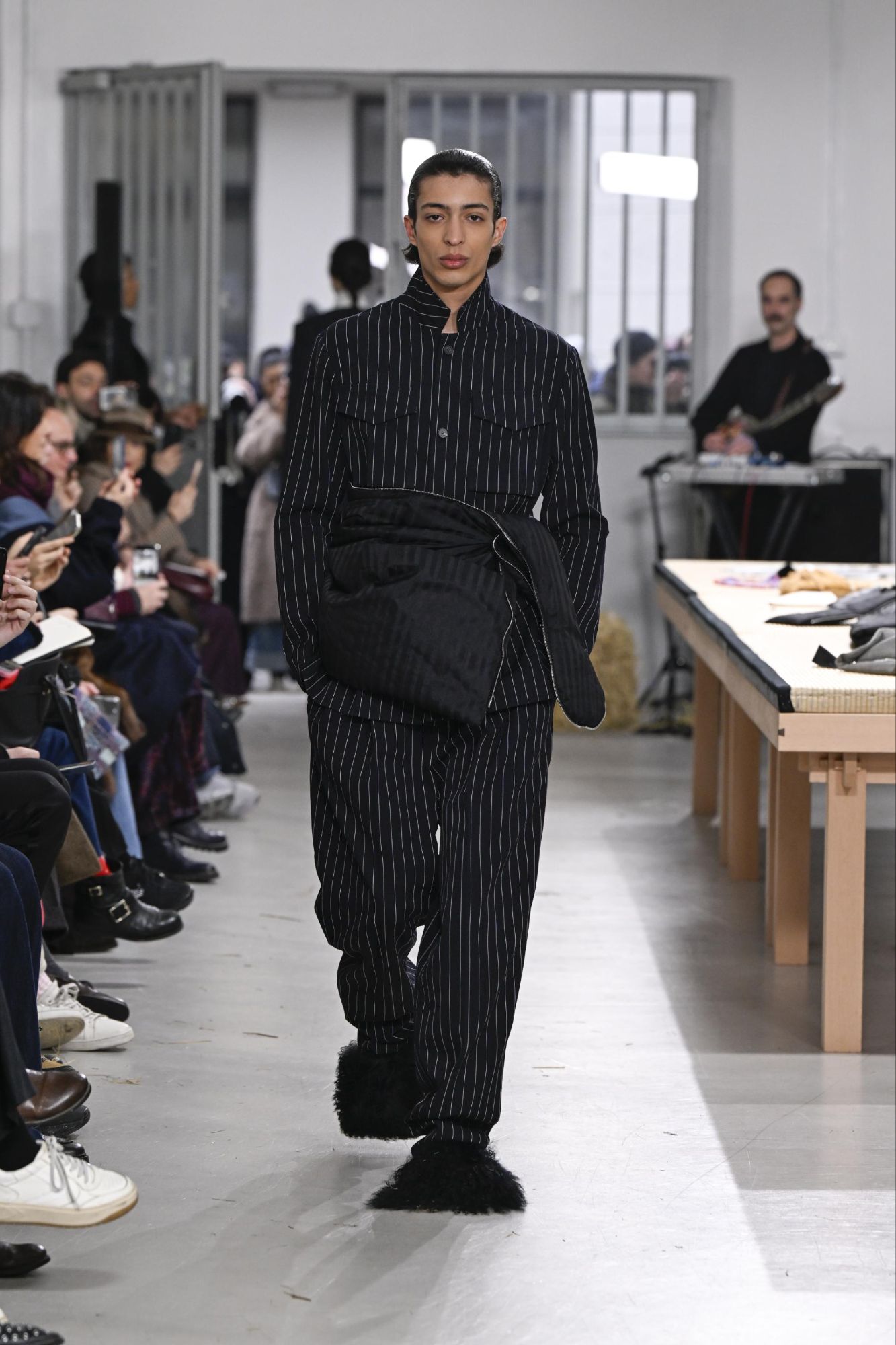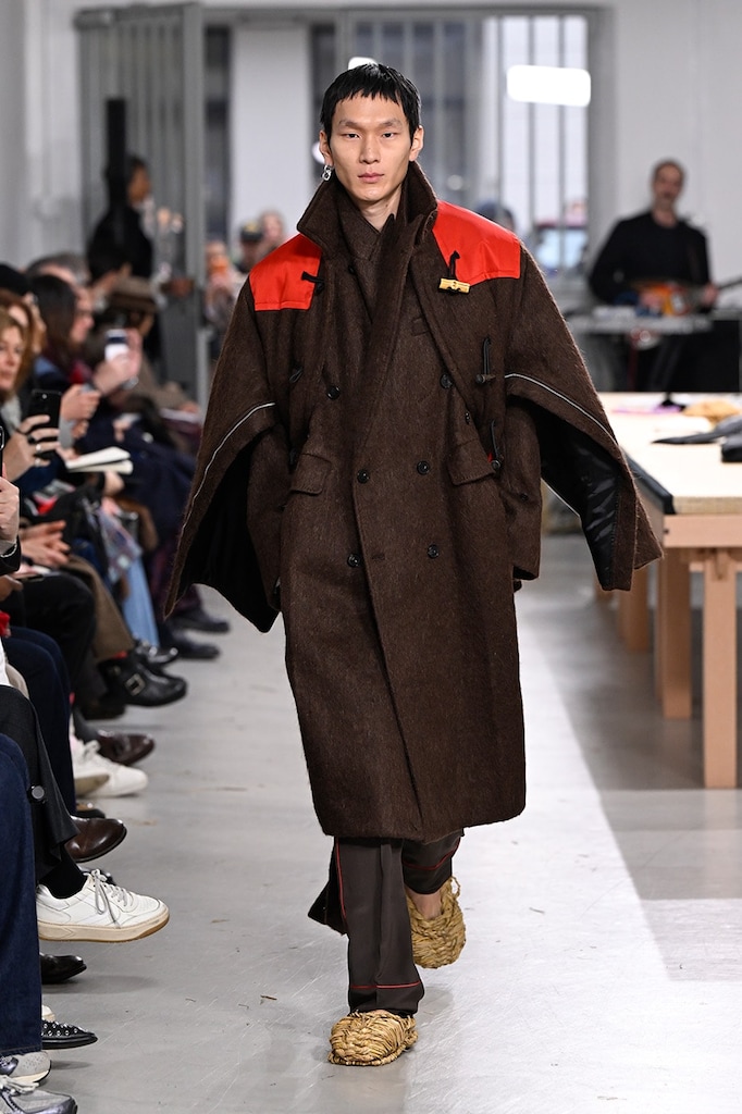 Setchu emerged as one of the season’s quiet revelations, where design spoke through restraint rather than spectacle. Satoshi approached menswear through the lens of survival in cold climates, but instead of dramatising the narrative, he refined it. The runway was built on purposeful layers – jackets and coats designed to shield, move, and adapt – each piece communicating intent through construction rather than excess.