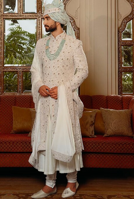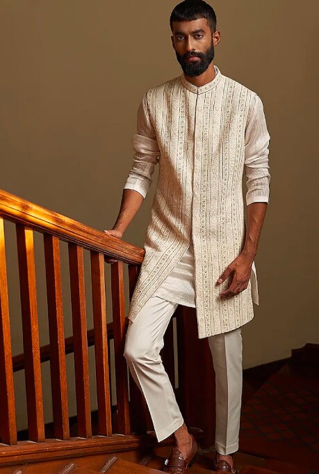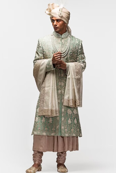 Sherwanis have an affluent past that spans generations, making them a must-have in any Indian wardrobe. Its rich history can be traced back to the Mughal Era when it was favoured by Persians and Turks in the Delhi Sultanate. Over time, it evolved into the more fitted and decorated ensembles that we see today, thanks in part to the patronage of the arts by Shah Jahan.