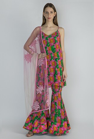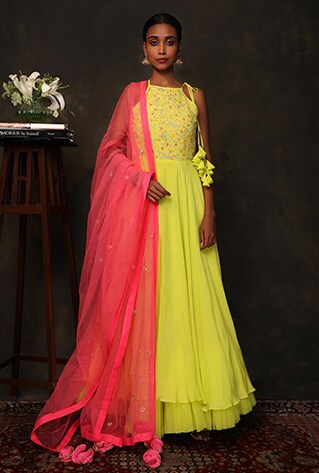 From statement floral prints to ditsy prints; this trend is somewhere in the middle of a Boho style and a Psychedelic style. There’s a hint of seventies fashion with a mix of eclectic colours and mesmeric prints. This is definitely my favourite trend, as even while incorporating even a hint of the trend, it’s almost impossible to have a boring look. Prints by Radhika is a label who aces the trend with their silhouettes and their use of colours. Two other favourites are Masaba and Gopi Vaid.