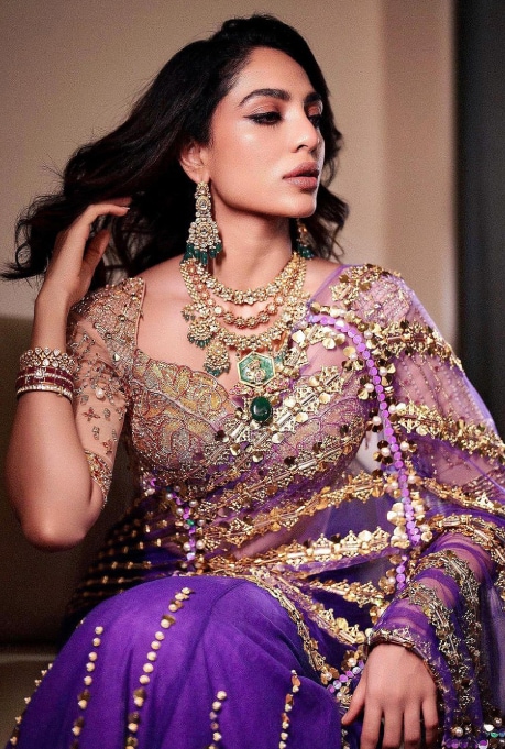Functional, flattering, and feminine- you can never go wrong with a saree for an Indian wedding! Always in the know of trends, Sobhita Dhulipala wore an eye-catching drape from Papa Don’t Preach by Shubhika for her sister’s reception party, making a case for the “more is more” aesthetic. You can always rely on a Papa Don’t Preach design to turn up the drama with their signature 3D embellishments. If you’re looking to go all-out for your loved one’s wedding, turn to this look for inspiration. The ace actor took the maximalist mood up a notch by teaming it with heavy jewellery, making it a look that’s impossible to ignore or forget.