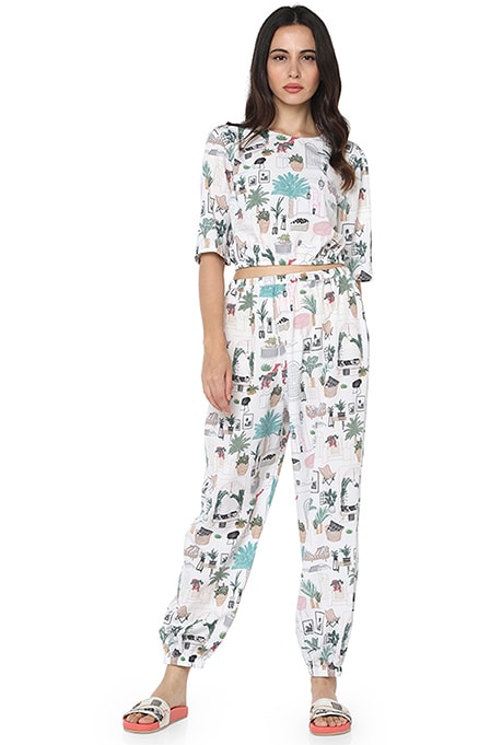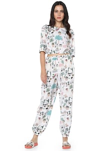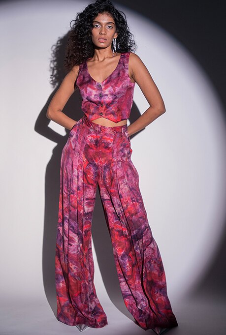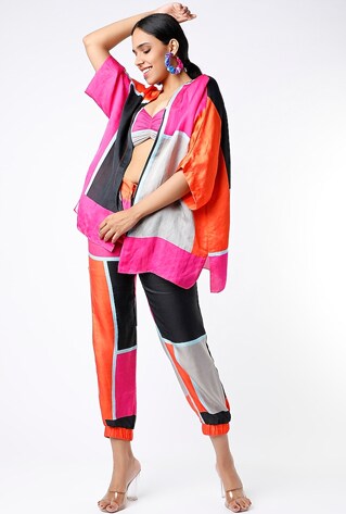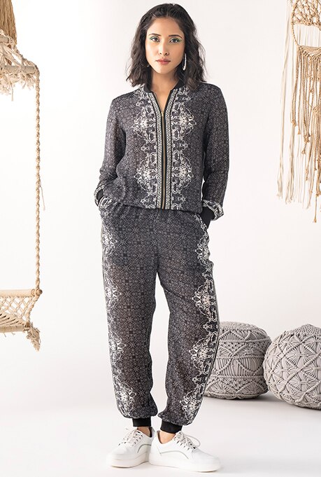 Ready to wear loungewear from PS Pret by Payal Singhal can be relied upon to imbue brightness in cosy, easy fabrics, and this printed jogger pant set is a case in point. Made from crepe and ribbed fabric and patterns, this jogger set by Chhavvi Aggarwal is perfect for a lazy day spent at the resort with a dash of quirkiness.