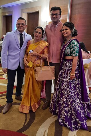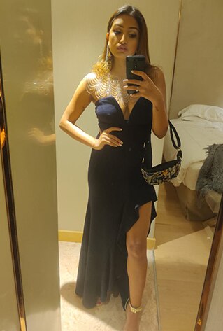 Shona wore hers for her best friend’s reception. It was a black-tie theme. She also carried it for her sister’s wedding in Goa, styling it with glamorous gowns both times around.