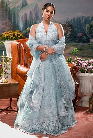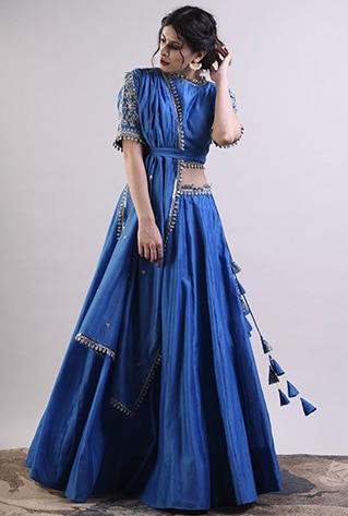 Periwinkle is a natural fit to offset a seaside ceremony. Soothing yet striking, this dusky pastel colour is perfect for a pre-wedding sundowner. But if you wish to turn your twilight time varmala ritual more dreamy, a periwinkle bridal lehenga is a perfect pick to walk down to stardom through the aisle.