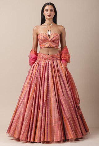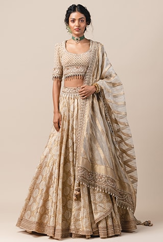 Tarun Tahiliani has been known for the way he plays with unique elements to create timeless pieces. Light and dark, structure and fluidity, the designer strikes the perfect balance in his garments to create stunning looks to appeal to the modern aesthetic of Indian fashion. The collection features bridal, trousseau and looks for the wedding party, crafted in fine tulle, silk and banarasi brocade fabrics.