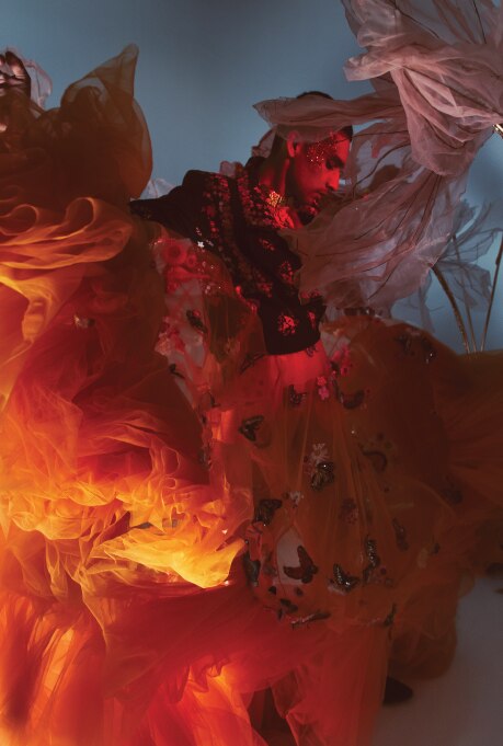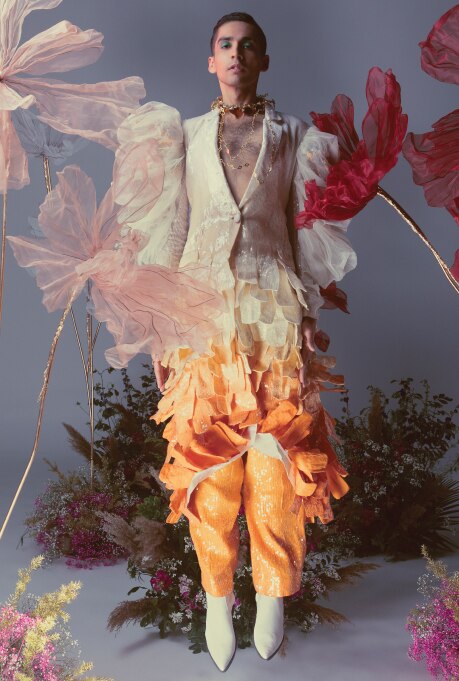 Presenting fashion influencer Siddharth Batra, designer Rahul Mishra’s muse, as he slips into a melange of moody, artistic and gender-fluid creations.