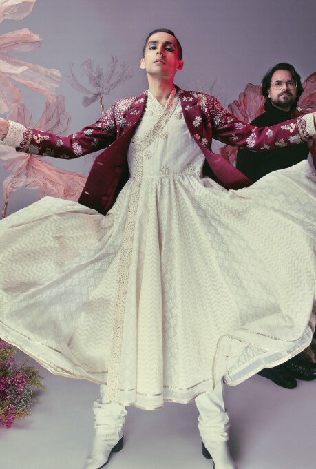 RM: Indian men today are embracing change a lot more and quite boldly so. Every coming day I meet men from age groups ranging between 20s to even 60s who are willing to wear bright colours, flared silhouettes and floral embroideries that we create. And these are people that would otherwise only dress in tailored suits. This could be owing to an impact of evolving social dynamics, and it’s quite heartwarming to witness this development.