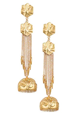 Earrings with fringes and tassels have been there and they’re great, but we love their brazen and dramatic counterparts way more! Certainly the most coveted pieces of statement jewellery, shoulder duster earrings aren’t for a faint-hearted. Skip the necklace as the bling reaches your collarbone with dollops of oomph. Look no further than the iconic and celebrity-favourite pair of tassel earrings by Valliyan to set the bar high.
