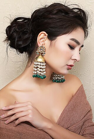 Browsing lust-worthy pieces to add to your collection? Moh Maya by Disha Khatri combines painstaking meenakari with kundan embedding while Belsis’s Jewellery renders it with freshwater pearls and danglers from Firdaus by Akshita are bejewelled with emeralds for a Mughal-inspired appeal. Traditional navratna style finds its way into cocktail hour glamour with Moh Maya by Disha Khatri’s statement piece. Indian couture and kundan are quintessential pairings you can pull off effortlessly, and you will never go unnoticed adorning these charmers.