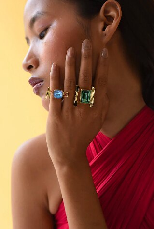Translating into a bohemian style at once, ring stacking has become a clever interpretation of ‘less is more’ fashion. From astronomical stones and crystals to enameled metals, you can create a veritable rainbow. The rule is to enjoy composing the mix of colours, metals and stones that are endlessly interchangeable. Kirti Kulhari shows you how to make stacked rings a clever part of your selfie. Stack multiple rhinestone rings by Radhika Agrawal! Esme and Arvino reinstate that there is no need to curb your creativity when it comes to enhancing your manicure.