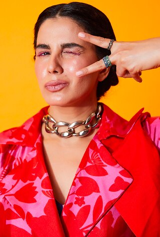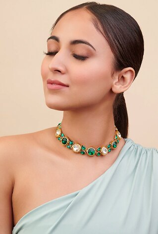 Whether you’re clubbing, pairing or layering— the rule is to have a moment. Curio Cottage‘s crystal-studded necklaces can pair effortlessly to complement your ball gowns and cocktail saris. Whereas, the cascading layers of oyster pearls and crystalline stones are the easiest to throw on. Experiment with everything— from kaftans to bustiers and structured blazers.