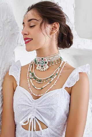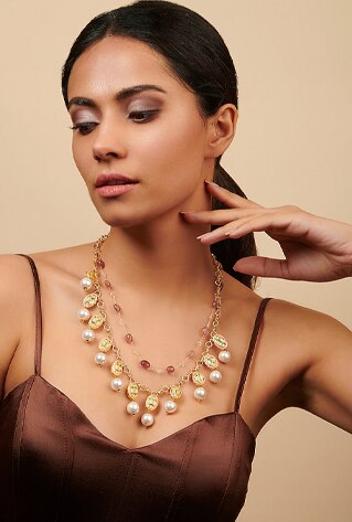Pearls are an eternal part of your bauble box and will continue to resonate with elegance even as trends evolve. While it may have been an emotional purchase for our parents and ancestors, millennials are keener to experiment with it. Case in point: Meticulously aligned glimpses of pearls define brand Amama in the most au courant way. The designs cater to both the divided perspectives—minimalists and maximalists. Place your bets on the metallic chain and pearl choker pairings. Or simply keep going the neo-classic route with hand embroidered Indian choker and layered necklace rendered in dainty pearls.