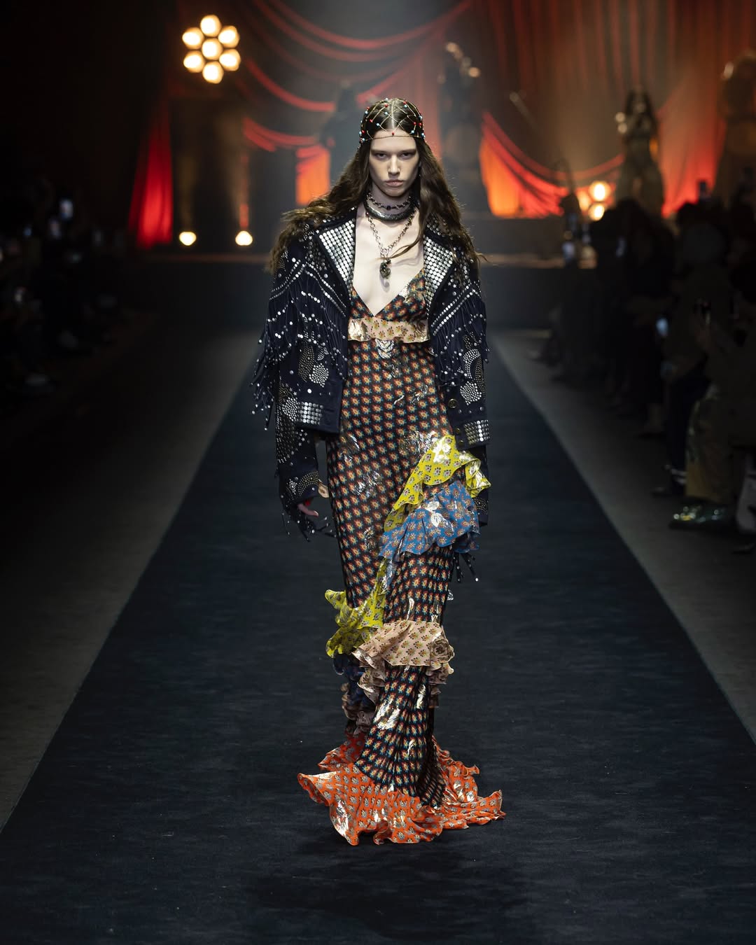 Fringes made a fierce comeback, swaying to the rhythm of movement and drama. Mathieu Blazy’s debut for Chanel presented us with an unforgettable feathered masterpiece, an instant icon of the season. Meanwhile, at Lakmē Fashion Week, Rina Dhaka brought her own sparkle to the trend with shimmering, metallic fringes that danced under the runway lights.