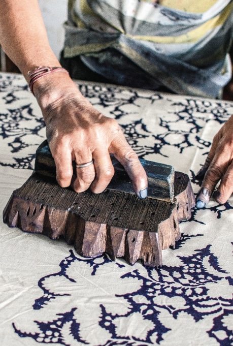 The craft further peaked with the arrival of the Mughals, who revolutionised it completely by bringing in Persian and Central Asian influences. The golden era of block printing began from the reign of Babur to that of Aurangzeb, when karkhaanas (special printing units) were set up to proliferate the craft according to Mughal taste. The Sultanate disapproved of ethnic abstract designs and introduced flora and fauna motifs into Indian textile design. The Mughals’ fondness for the illusions of ‘eternal gardens’ inspired new and stylised motifs, but it was Emperor Jahangir’s exceptional fascination for nature that etched florals as an integral part of India’s design history. This was then carried forward by Shah Jahan, who commissioned an exquisite floral pietra dura (or Parchin Kari) on the Taj Mahal – the design of which continues to inspire block printers to date.