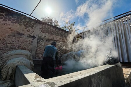 The entire process begins with washing colossal yards of fabrics in tubs made out of mud, and then hanging them under natural sunlight to dry out completely. This step generally does not take more than a day, except during monsoons when the fabrics take more time to get rid of all the dampness. Once dried, the printer then proceeds to mark the section on the cloth where the first block is to be stamped.