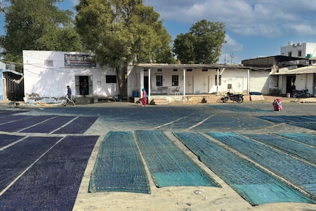 Yards of freshly woven and washed cotton drying in Rajasthan.