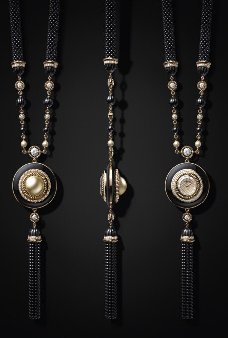 In an impressive array of over 30 new timepieces that were released by the house of Chanel this year, the stellar line-up is a mix of classic lines that saw new avatars and a revival of Madame Coco Chanel’s favourite things. The Hors Serie Mademoiselle Prive Bouton Golden Pearl Motif collection meditates on her love for buttons – the long necklaces, in particular, are embellished with diamonds, pearls and onyx to commemorate the button. Limited to only five pieces, this necklace embodies Chanel’s undeniable creativity with a classic twist.