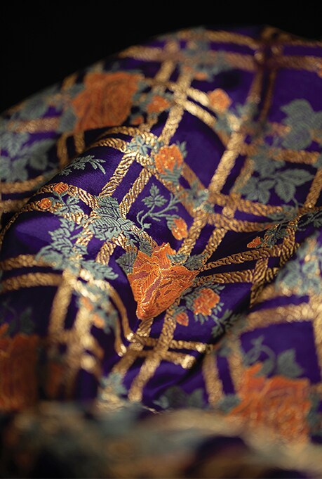 SA: Benaras has always been known for being adaptive. Techniques like gyaser [world heritage textile), tanchoi, and dampach were all brought into the Banaras cluster by external influences. Similarly, material interventions were introduced through the use of different silks. The Indian handloom industry is moving towards adapting to different ideas, styles, and techniques of weaving. This flexibility allows them to mould as per requirement, which is a gain for the industry as it doesn’t fall prey to stagnancy or monotony. For colour palettes, I would say that Indian jewel colours are an all-time favourite while experimenting with pastels, while offbeat colours always bring a freshness. The Indian design repertoire is so vast that motifs are often inspired from vintage textiles. However, at Swati & Sunaina GOLD we draw inspiration from nature and art.