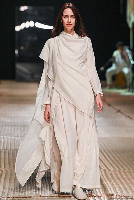 Producing small-batch slow-made clothing, 11.11/eleven eleven is renowned for its use of indigenous cotton and 100% natural dyes. With craftsmanship at the heart of their design philosophy, the brand collaborates with artisans located across India. Handloom sweatshirts, breezy silk dresses, khadi denim, and craft-infused outerwear make up the brand’s collection. The label focuess on creating high-quality, timeless pieces using eco-friendly materials and processes that honour India’s rich textile heritage.