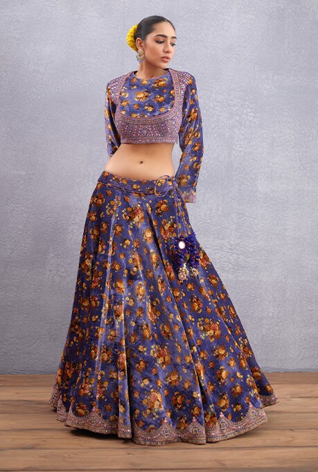 There’s something inherently rich and classy about Velvet lehengas. Want to take your style up a notch? Heavily embroidered lehengas are just what you need. Browse various leading Indian designers, like Kalighata, Sawan Gandhi, Mrunalini Rao, and Siddartha Tytler, to find your perfect pick.