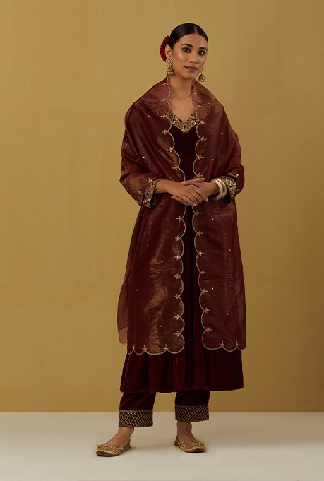 Scouting for an ethnic ensemble with an air of glamour? Wedding season is almost here! Now is the time to put on a winning velvet wedding guest dress. Nothing compares to an Anarkali made from the most luxurious textile around. Velvet Anarkalis are an enchanting classic that will never go out of style. Want to make a statement at weddings and other special occasions? An intricately embellished Velvet Anarkali is your best bet.