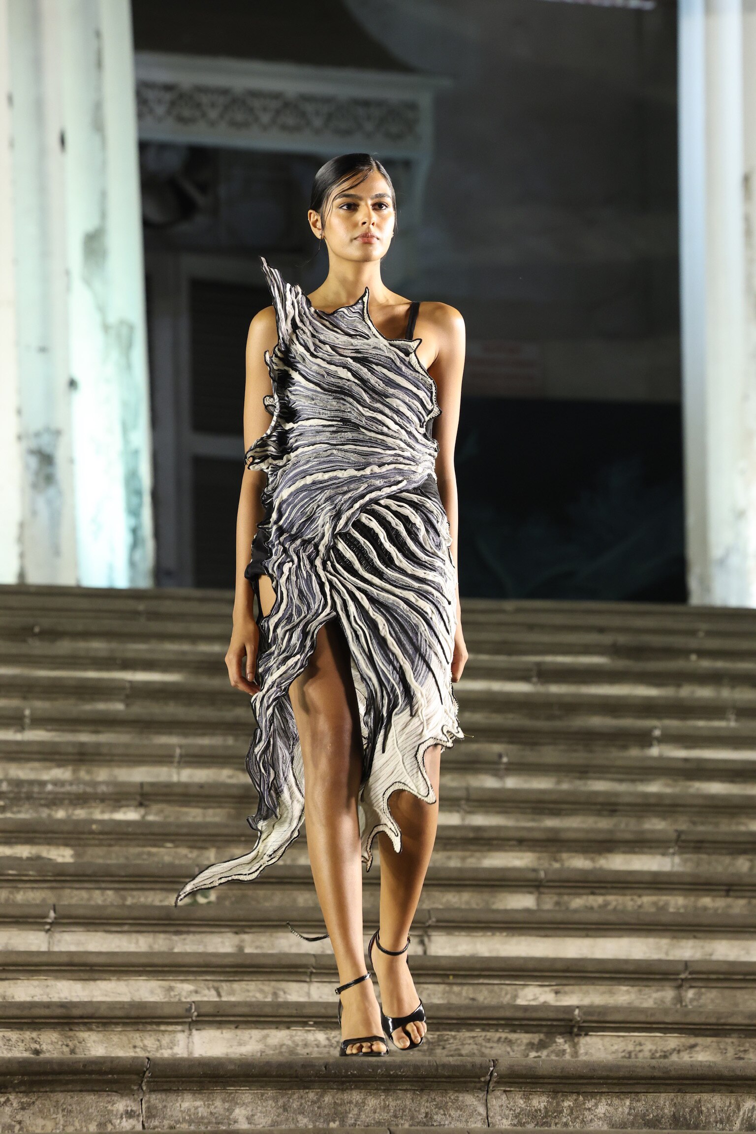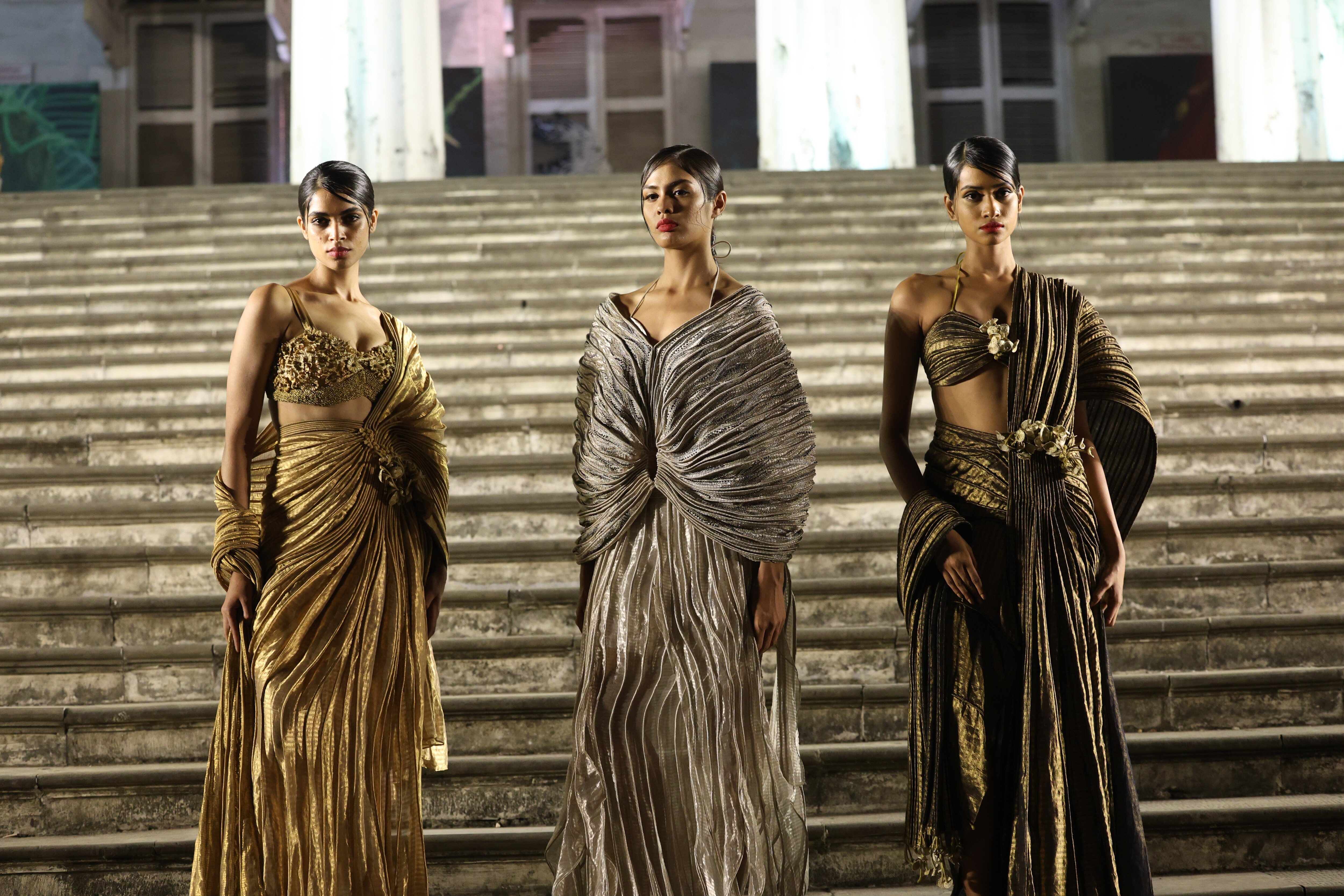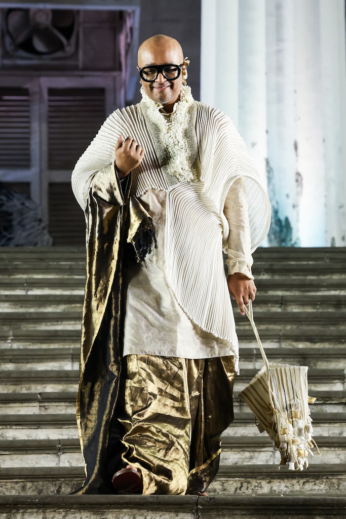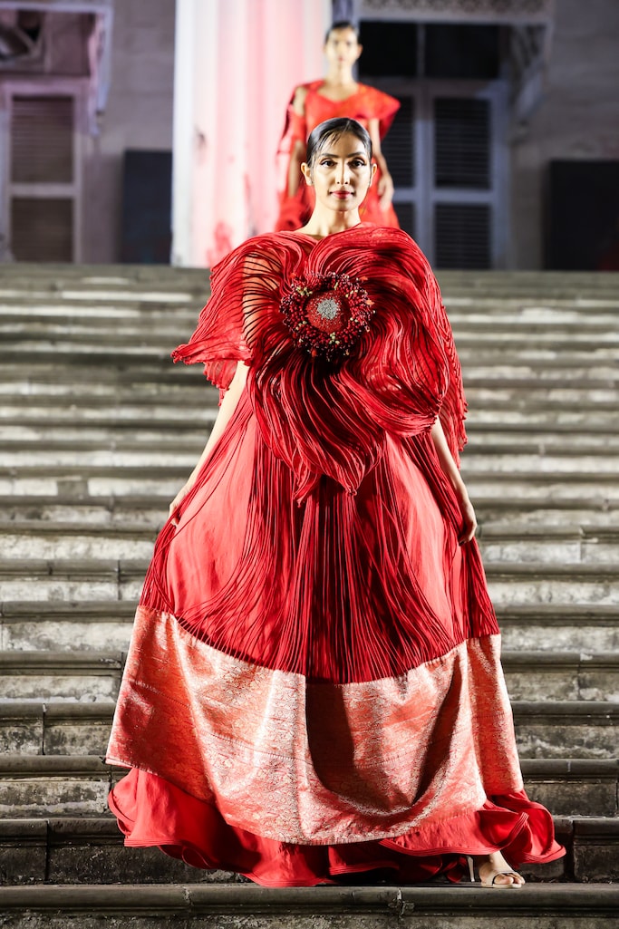 The creative visionary recently marked the quadranscentennial of her eponymous couture label with her latest collection, Beneath the Surface, staged at the illustrious Asiatic Society of Mumbai. Located at the heart of the city and constantly animated by pedestrians and visitors, the venue made the show all the more compelling and accessible.“This meant a lot in my mission to spread the beauty of handlooms across people. It [The Asiatic Society] was founded to spread the heritage and culture of India – again, very aligned with my mission of preserving and reviving the Indian handloom”, said the designer. This moment for Vaishali marked a passage of the baton, where Indian couture – handwoven, homegrown, and wholly made in India – claims its rightful place in Bombay’s iconic squares.