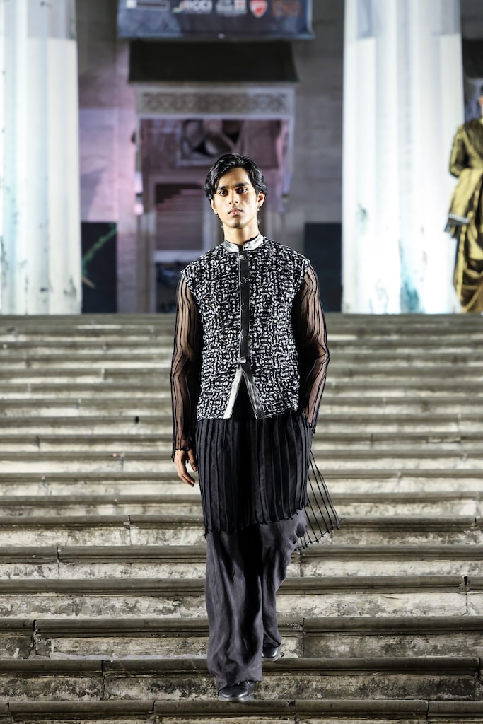 Marking another epochal event at the fashion show was her debut menswear collection. The designer believes that men are often drawn to fine handwork and precious fabrics, but lack of options and resources pushes them toward safer choices. “I had been contemplating menswear for a while, but I was waiting for the right moment – that spark that would burst the bubble.” True to her risk-taking spirit, she chose Khadi as the foundation of her menswear line too, lending the collection a compelling depth, and making it all the more captivating.