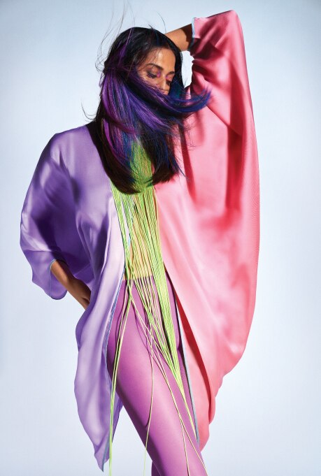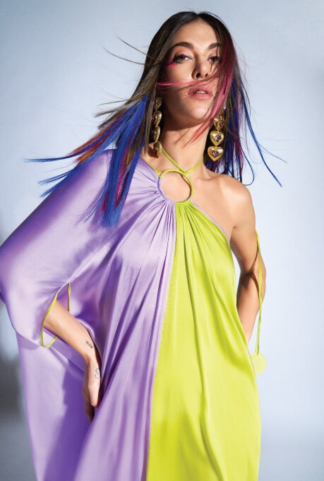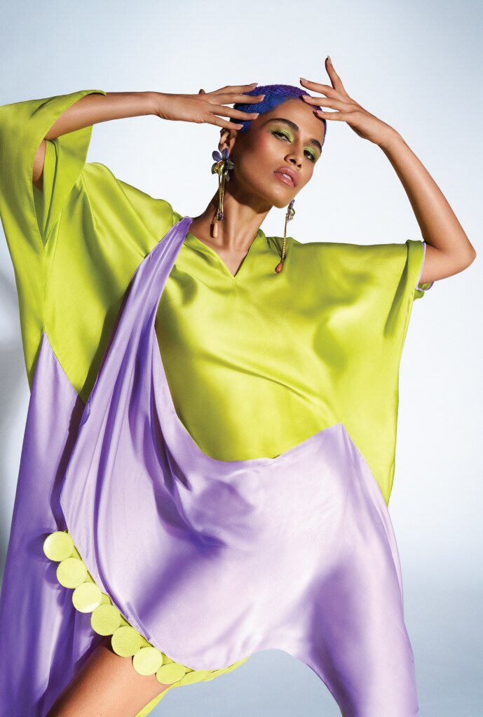 When one looks back at Wendell’s most revered creations, one can find an eclectic, joy-evoking colour palette along with serene whites and pastels. In this collection, Amit Aggarwal pays homage to the style savant with saturated hues and billowing silhouettes that pulsate the vibe of a tropical haven. Think bias-cut dresses, flowy capes, delicate fringes and dreamy fabrics. In this lineup, Wendell’s celebrated flares find form with Amit Aggarwal’s signature rings and circles. Hence, the inconspicuous use of geometry evident in each piece stands for the flawless blend of two very different design codes.