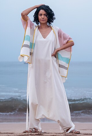 From capes to dresses these are pieces you can throw on at a moment’s notice, and ones that give us limitless style possibilities. Also notable are the separates that can be worn together or reimagined with existing pieces in your closet. Apart from contemporary womenswear, the collection also carries sarees as well as menswear.