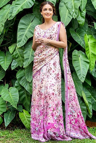 Probably the reason why celebrities swear by pre-draped saris is that you don’t have to reserve an hour-long slot for draping it perfectly. With practicality always on high priority for our on-the-go Bollywood actresses, pre-constructed saris offer the fluidity of a gown or a jumpsuit, sans the drudgery of draping. The lehenga sari has been the most-coveted hybrid. Channel the spirit of the dancing diva Madhuri Dixit in a twirl-ready lehenga sari by Ritika Mirchandani. On the other hand, Shilpa Shetty has noticeably mastered the style statement with hybrids from Amit Agarwal and Reeti Arneja. Take a tip from Dia Mirza pulling off an easy-breezy look in this artsy floral printed pre-draped sari by Tarun Tahiliani. Tara Sutaria made with her flair for fusion style in a draped dhoti sari rendition by Punit Balana.