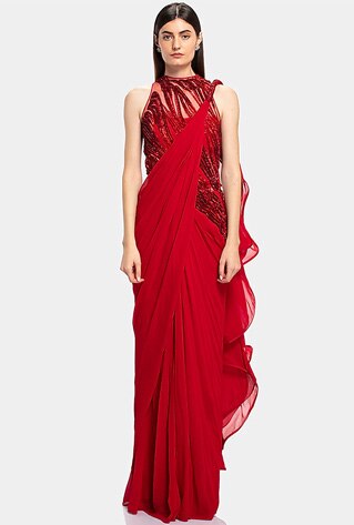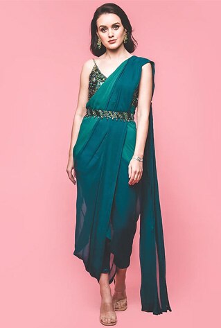 Almost a decade since pre-stitched sari resolved the dilemma of pleating six yards — concept saris have taken the forever spot on the style radar. What makes conceptual saris iconic to become a mainstay parallelly with the classic six-yards? Promising comfort, practicality and the quintessential allure of impeccably draped six yards all with a nip of the zip, pre-draped saris offer the ultimate update a modern Indian woman seeks. Here’s why pre-draped sari hybrids are deemed as iconic as the classic six-yards.