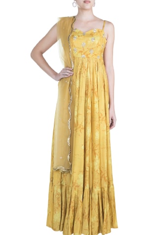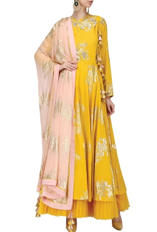 Owing to its curve-enhancing attributes and old-world elegance, anarkali remains a quintessential classic in the trend-dominated fashion scene. Couturiers and style mavens have been continually reviving and spinning the silhouette in whimsically dramatic and glamour-oozing cuts while boasting of the culture-rich virtue of the style with traditional aesthetics. An anarkali paired with jhumki danglers is the winning formula to make the onlookers swoon over your charm. As a three-piece traditional or a floor-grazing-gown-like statement-maker, the silhouette defines opulence in every version. The style blends into the revelries of weddings and festive occasions with a charismatic appeal. Anarkalis are also perfect twirly substitutes for can-canned lehengas and over-voluminous gowns. Its fluid flare lends a captivating feminine allure while the easiness and comfort will let you indulge in every revelry from sundowner wedding get-togethers to moonlight sangeet nights hassle-free. A perfect win-win!